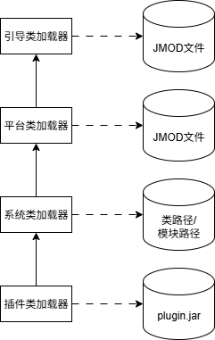 所使用的类加载器,而插件JAR中的类对其不可见。这种现象称为类加载器反转(classloader inversion)。