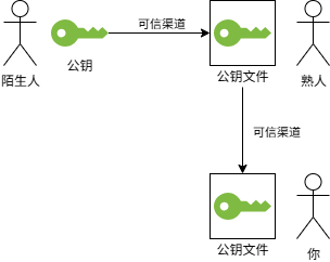 公钥加密(public key cryptography)(也称为非对称加密)解决了这个问题。在公钥加密中,Bob有一个密钥对,由公钥和匹配的私钥组成。Bob可以在任何地方发布公钥,但必需严格保守私钥。Alice只需使用公钥对她发送给Bob的消息进行加密即可。